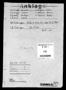Akt oskarżenia prokuratury w Tybindze 3a Js C 1832/60 przeciwko Eichingerowi i in. (SA 109)