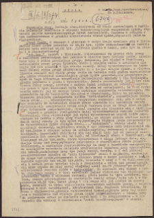 Odpis raportu organizacji konspiracyjnej dotyczący losu Żydów w okupowanej Polsce jesienią 1943 r. (m. in. likwidacja obozu w Poniatowej).